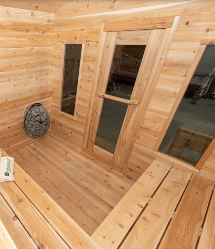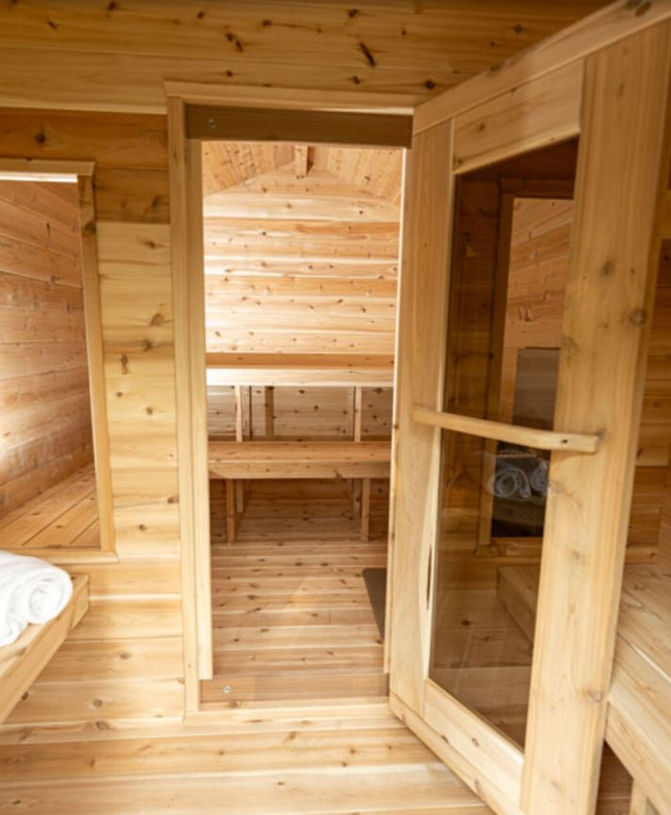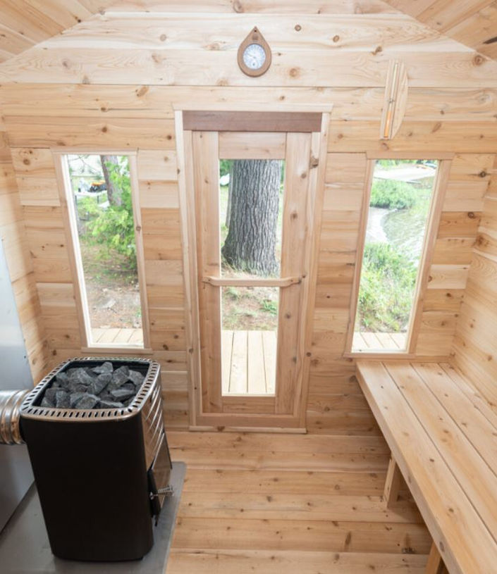 Proudly made in Canada out of white cedar, the Bunkie is a staple in our portfolio. Perfect for a multi-functional use to relax, socialize with friends, or for hot yoga, stretching and fitness. Available with an electric or wood burning stove. Please note that a certified electrician is required for electric heater installations.